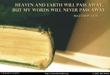 Matthew 24:6-8, 35 (NIV) [Jesus said]: "You will hear of wars and rumors of wars, but see to it that you are not alarmed. Such things must happen, but the end is still to come. Nation will rise against nation, and kingdom against kingdom. There will be famines and earthquakes in various places. All theses are the beginning of birth pains... Heaven and earth will pass away, but my words will never pass away."