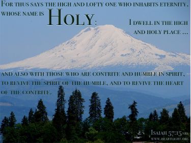 For thus says the high and lofty one who inhabits eternity, whose name is Holy: I dwell in the high and holy place, and also with those who are contrite and humble in spirit, to revive the spirit of the humble, and to revive the heart of the contrite.