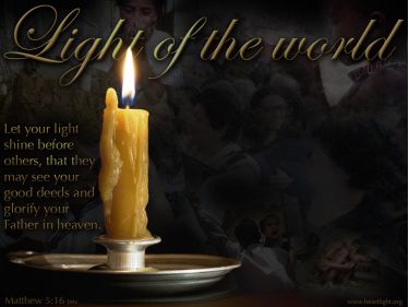 Matthew 5:14-16 (NIV) [Jesus said:] "You are the light of the world. A town built on a hill cannot be hidden. Neither do people light a lamp and put it under a bowl. Instead they put it on its stand, and it gives light to everyone in the house. In the same way, let your light shine before others, that they may see your good deeds and glorify your Father in heaven."
